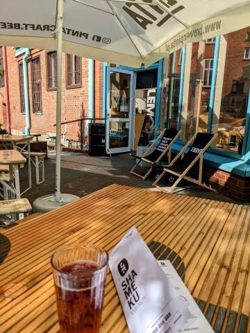 W sezonie letnio-wiosennym dysponujemy również ogródkiem otoczonym zielenią. Lokal usytuowany jest w centrum Bielska- Białej, na tyłach historycznego budynku pasażu Pod Orłem.